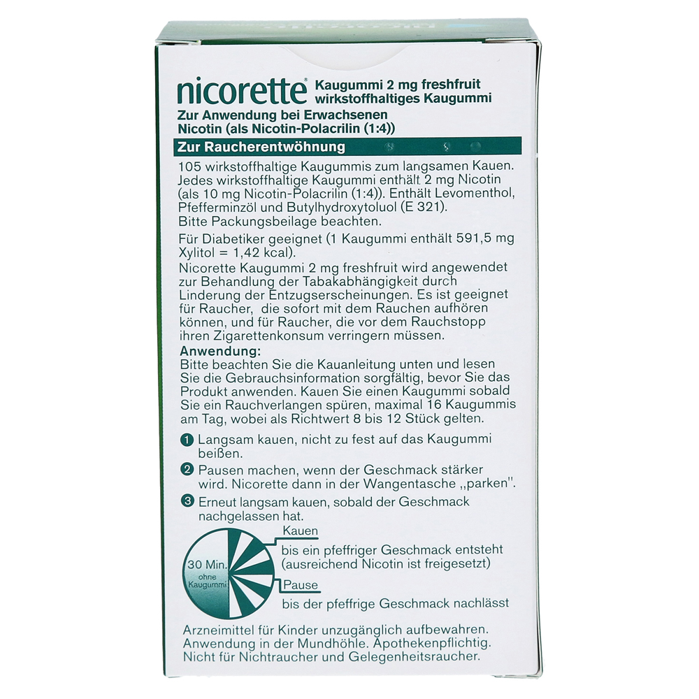 Жевательные десны никотета доступны как 2 мг и 4 мг, а в разных ароматах: WhiteMint, Freshmint, Freshfruit (размер пакета 30 или 105 штук). Для курильщиков, которые курят менее 20 сигарет в день, подходит 2 мг никотиновой углеродистой резины. Если ваше потребление составляет 20 или более сигаретов, то вы должны взять 4 мг никотиновой резиновой резинки.