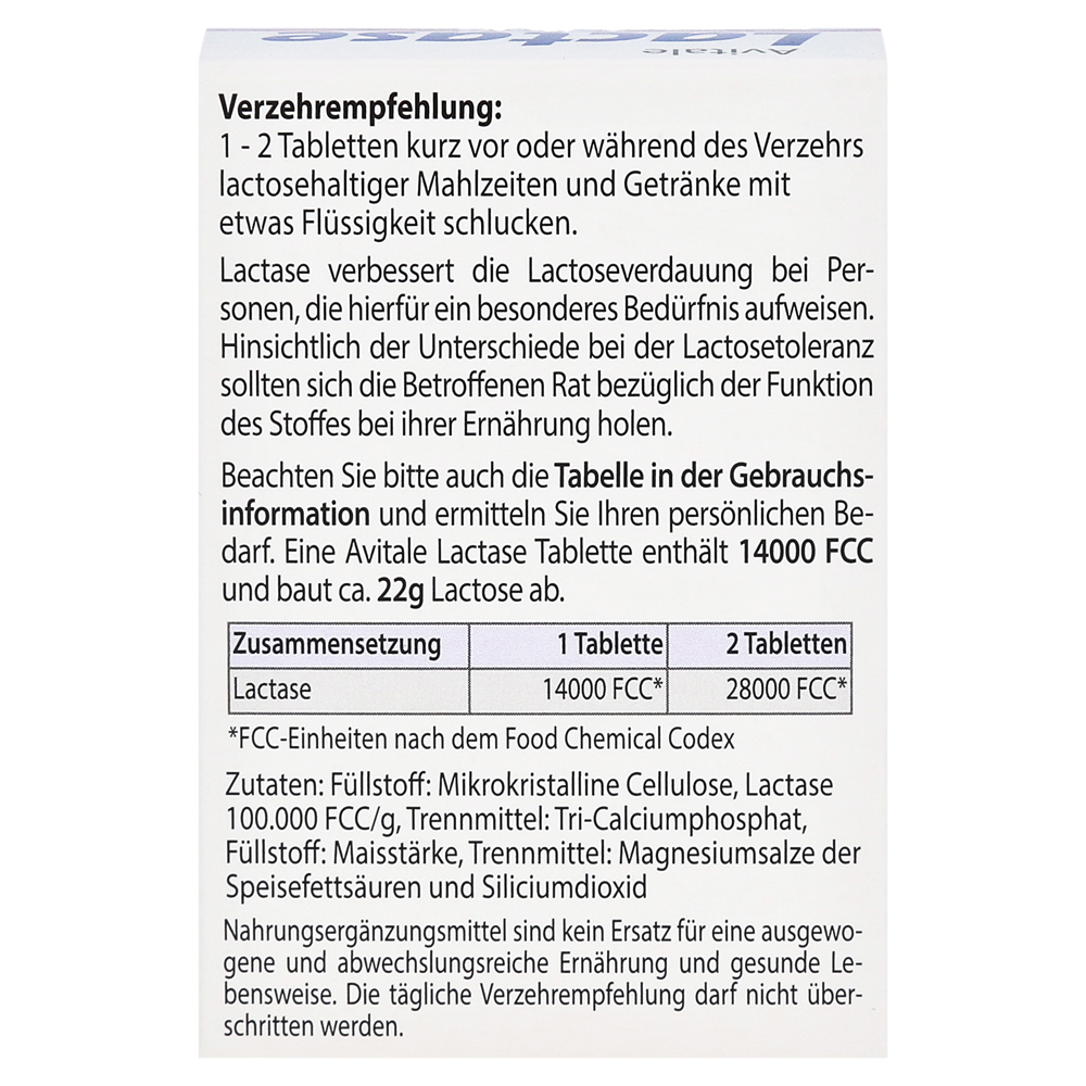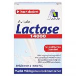 Авитальная таблетка лактазы содержит 14000 FCC и строит около 22 г лактозы.