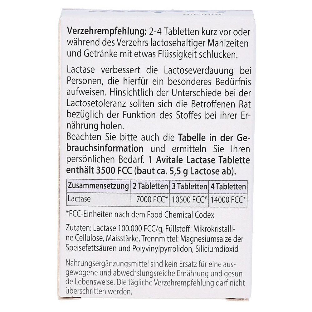 Авитальная таблетка лактазы содержит 3500 FCC и строит около 5,5 г лактозы.