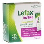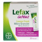 Интенсив Lefax подходит для более сильных вздутий, вздутие живота, боли, судороги и давления в желудке. Он растворяет пузырьки газа и также подходит для применения благодаря практическим мешкам микро-гранул.