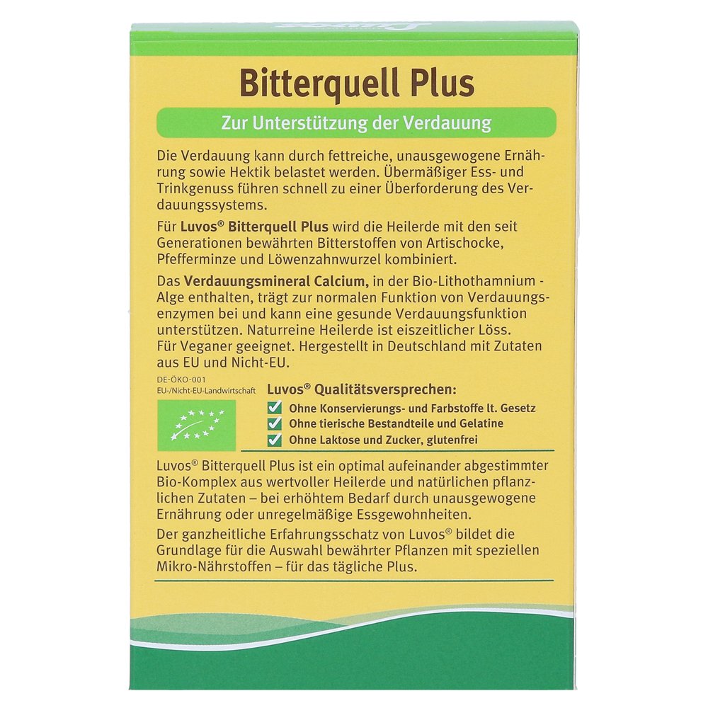 Luvos-Bitterquell Plus — это оптимально скоординированный органический комплекс с исцелением и натуральными, органическими сертифицированными ингредиентами. Натуральный продукт сочетает в себе целебную землю с органическим артишоком, органическим перцем и органическим корнем одуванчика.