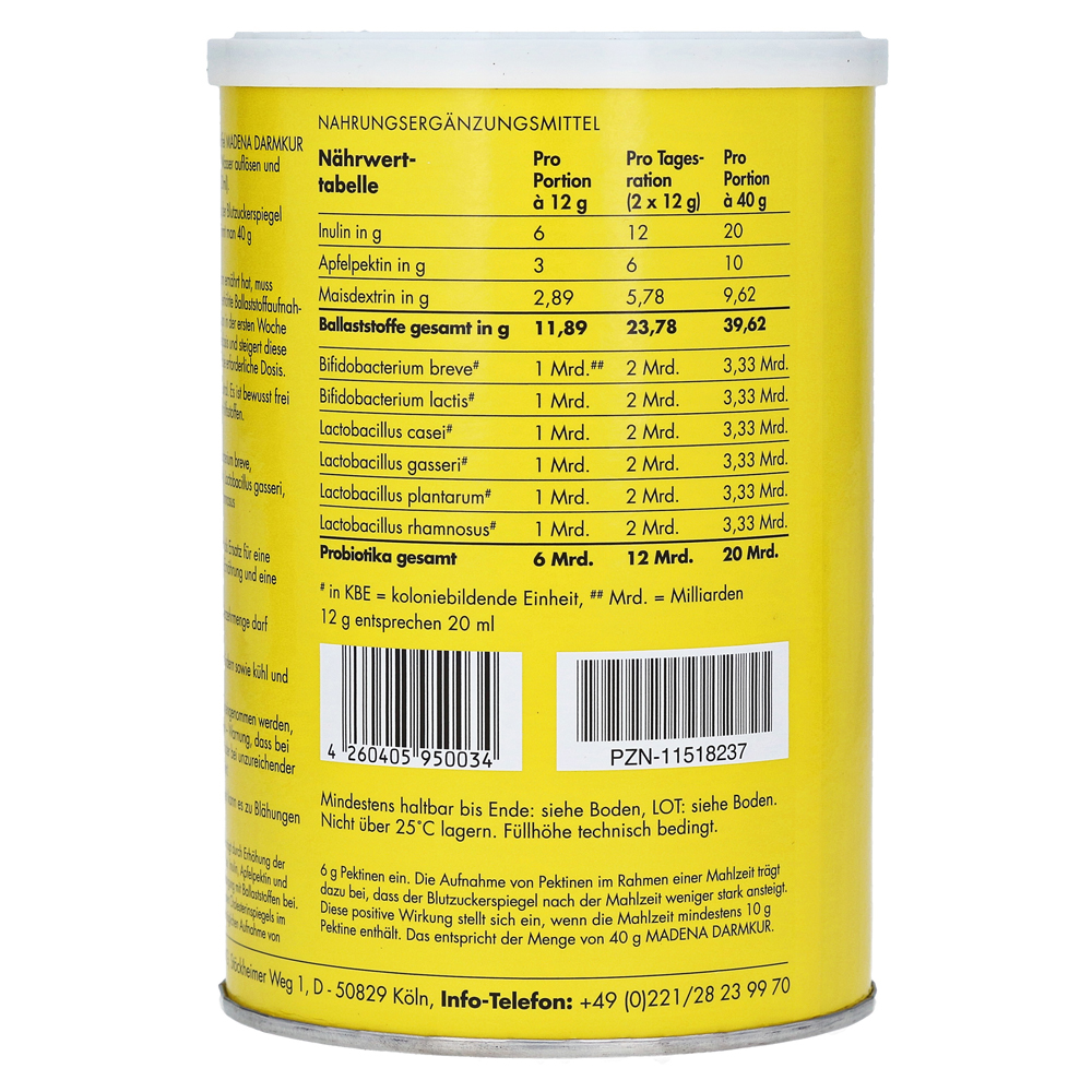 Способствует достаточной подаче волокна (INULIN, PECTIN Apple Pectin и Cornextrin способствуют достаточной подаче волокна) и улучшить жировой метаболизм (пектины способствуют поддержанию нормального уровня холестерина в крови. Этот эффект возникает с дневным потреблением. Из 6 г Pektin. Запись пектина как часть еды помогает, чтобы уровень сахара в крови увеличивается меньше после еды. Это происходит при 10 г пектинов (40 г Madena кишечника)).