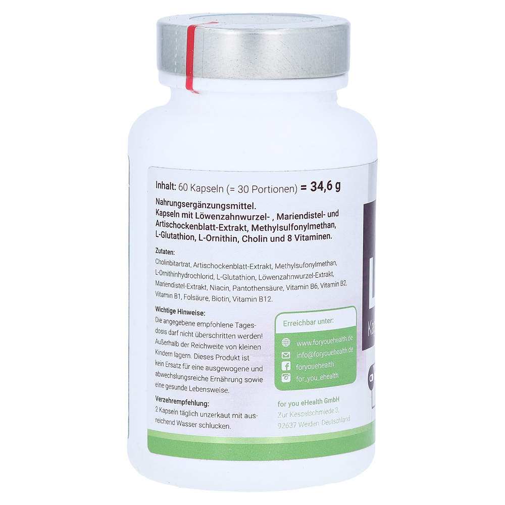 Пищевая добавка содержит корне одуванчика, экстракт листа Mari-Thistle и Artichoke, метилсульфонилметан, L-глутатион, L-орнитин, холин и 8 витаминов.