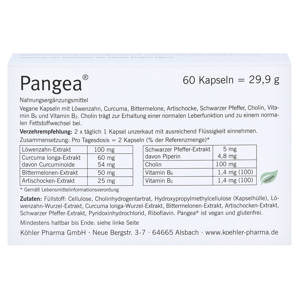 Пищевая добавка Pangea содержит ценную комбинацию экстрактов одуванчиков, куркума Лонга, горьких дынь, артишоки, черного перца и микроэлектрических средств холин, витамин B6 и витамин B2.