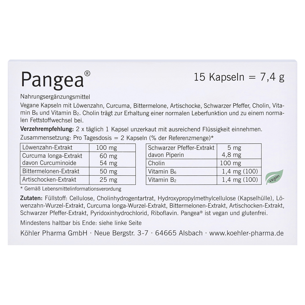 Пищевая добавка Pangea содержит ценную комбинацию экстрактов одуванчиков, куркума Лонга, горьких дынь, артишоки, черного перца и микроэлектрических средств холин, витамин B6 и витамин B2.
