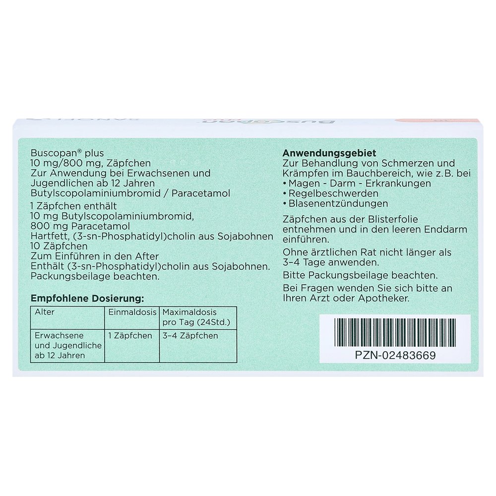 Суппозитории Buscopan Plus — в боли в животе и боям в животе