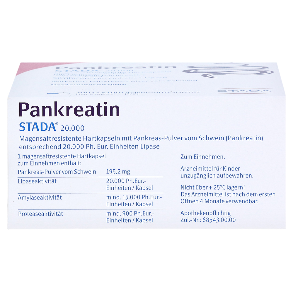 Pancreatin Stada 20 000 — это лекарство, содержащее пищеварительные вещества (ферменты) от поджелудочной железы (поджелудочной железы) от свиньи.