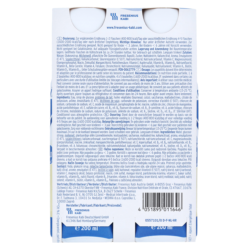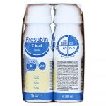 Передние напитка Фресубин 2 ккал в ванили вкуса содержит 2 калории на миллилитр. Кроме того, это очень богаты белком (10 г на 100 мл) и без волокна.