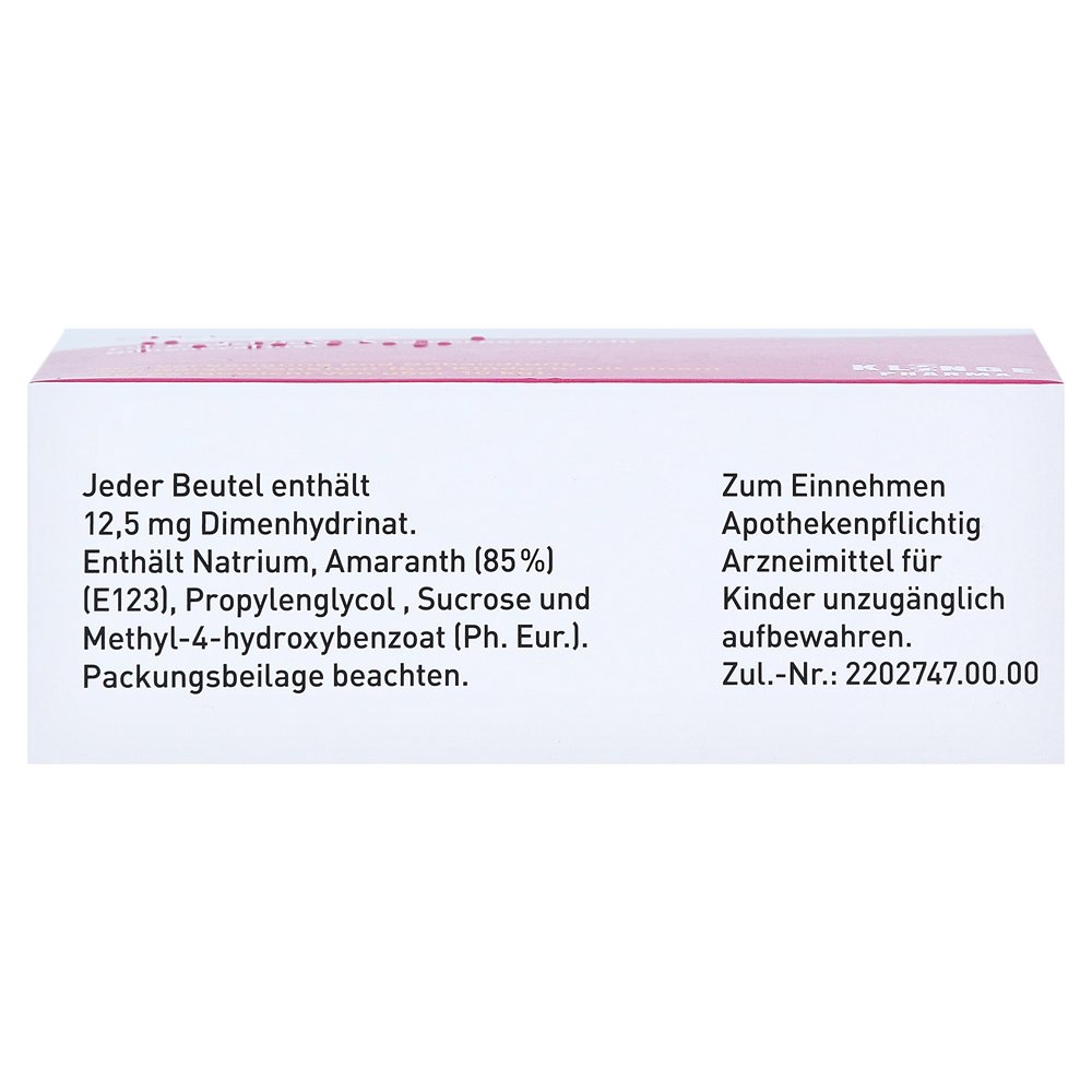 Содержимый активный ингредиент диминитата напрямую обращается к дробильному центру в мозге и блокирует гистаминовые рецепторы, так что сигналы, которые вызывают тошноту и рвоту, не пересылаются.