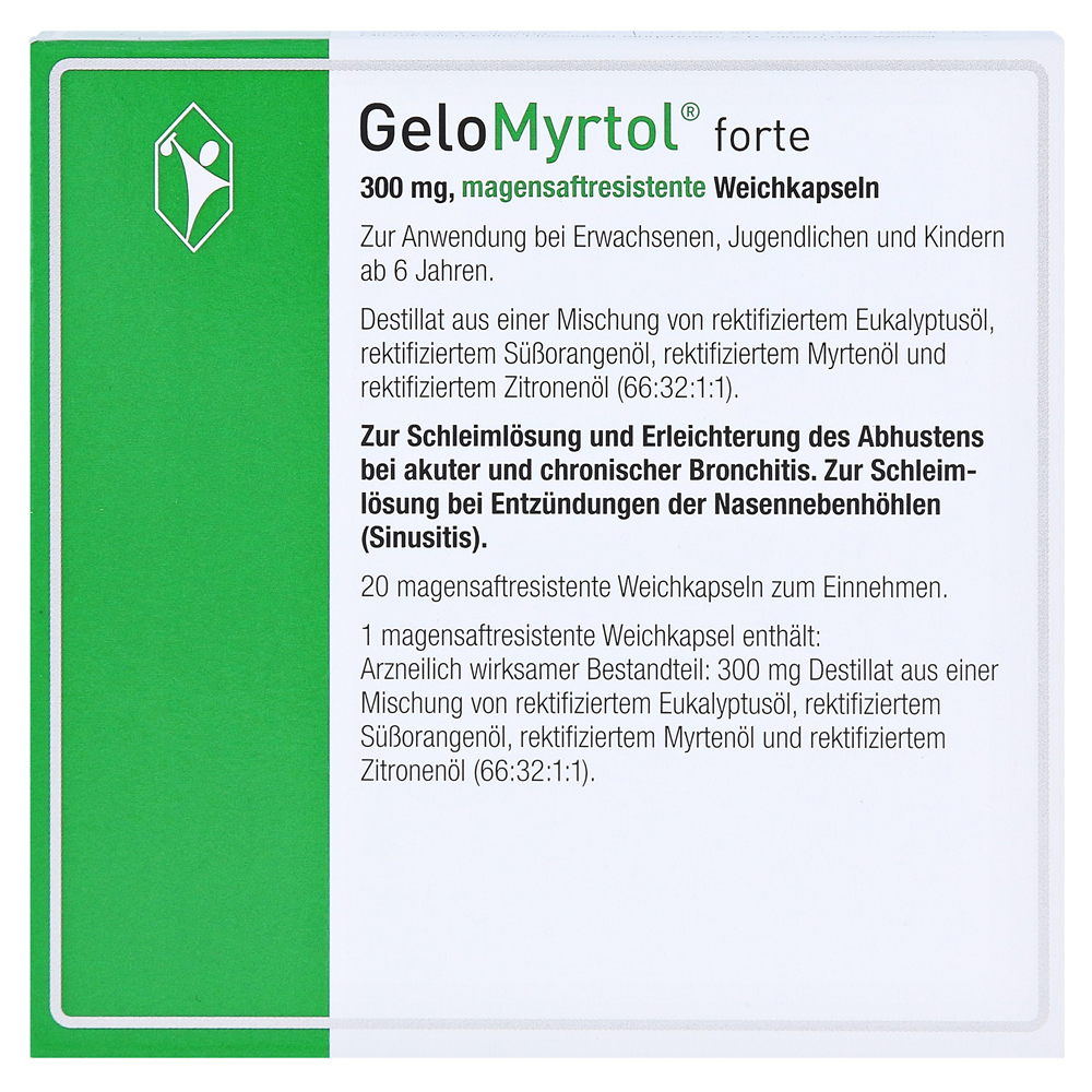 Gelomyrtol Forte используется для раствора слизи в дыхательных путях и носовых пазух, а также для облегчения злоупотребления.