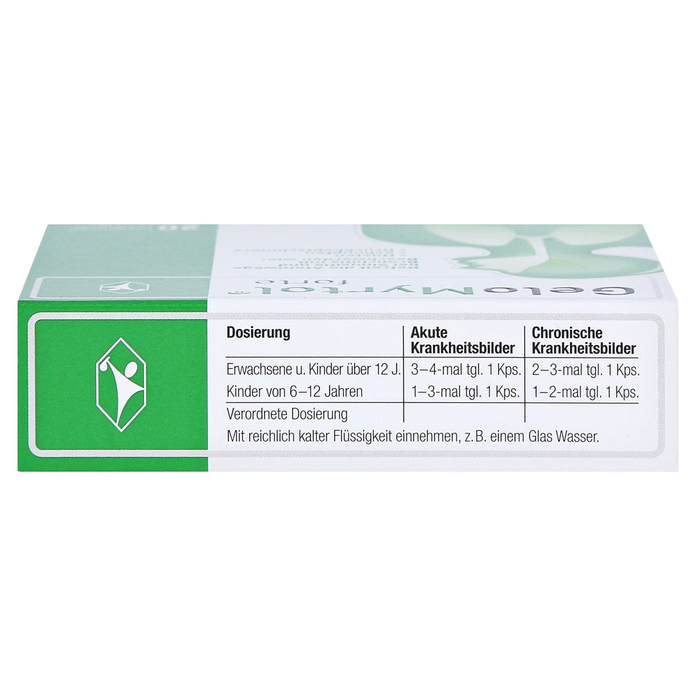 Геломиртол Форте вводят высококонцентрированные в желудочных капсулах. Только в тонкой кишечнике активный ингредиент поглощается и транспортируется через кровь в бронхи и носовые пазухи.