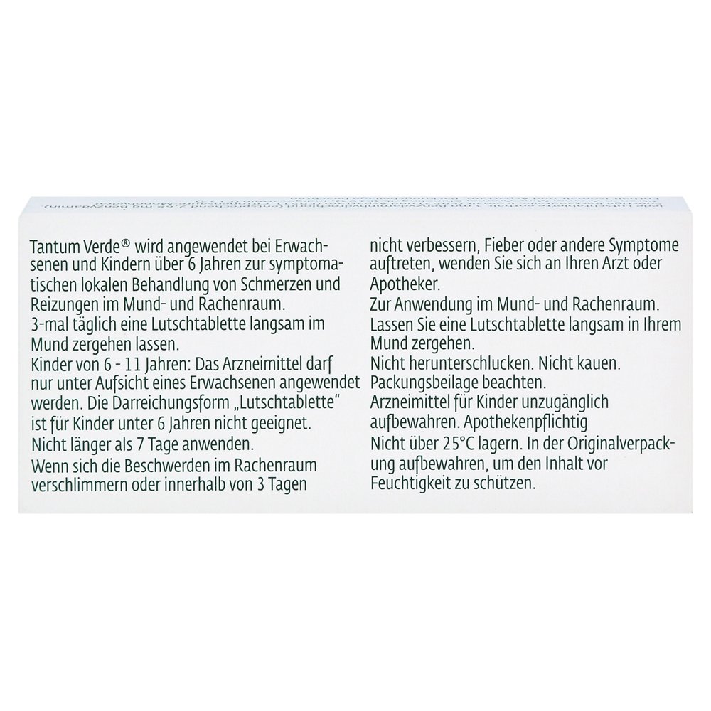 Благодаря противовоспалительному (противовоспалительному) и местному анестетическому (локальному анестетическому) свойствам активного ингредиента Benzydamine Tantum Verde® подходит для симптоматического лечения боли и раздражения в комнате оральной и горловины, таких как: