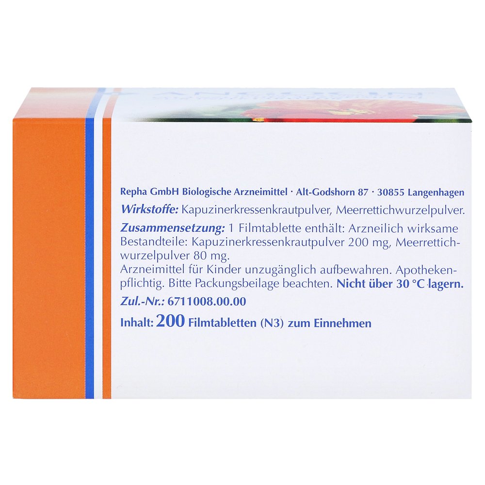 Angocin Anti-Infection N — это травяная медицина из корня Capuchin Cress и Cresseradish и используется для улучшения жалоб в инфекциях дыхания и мочевыводящих путей.