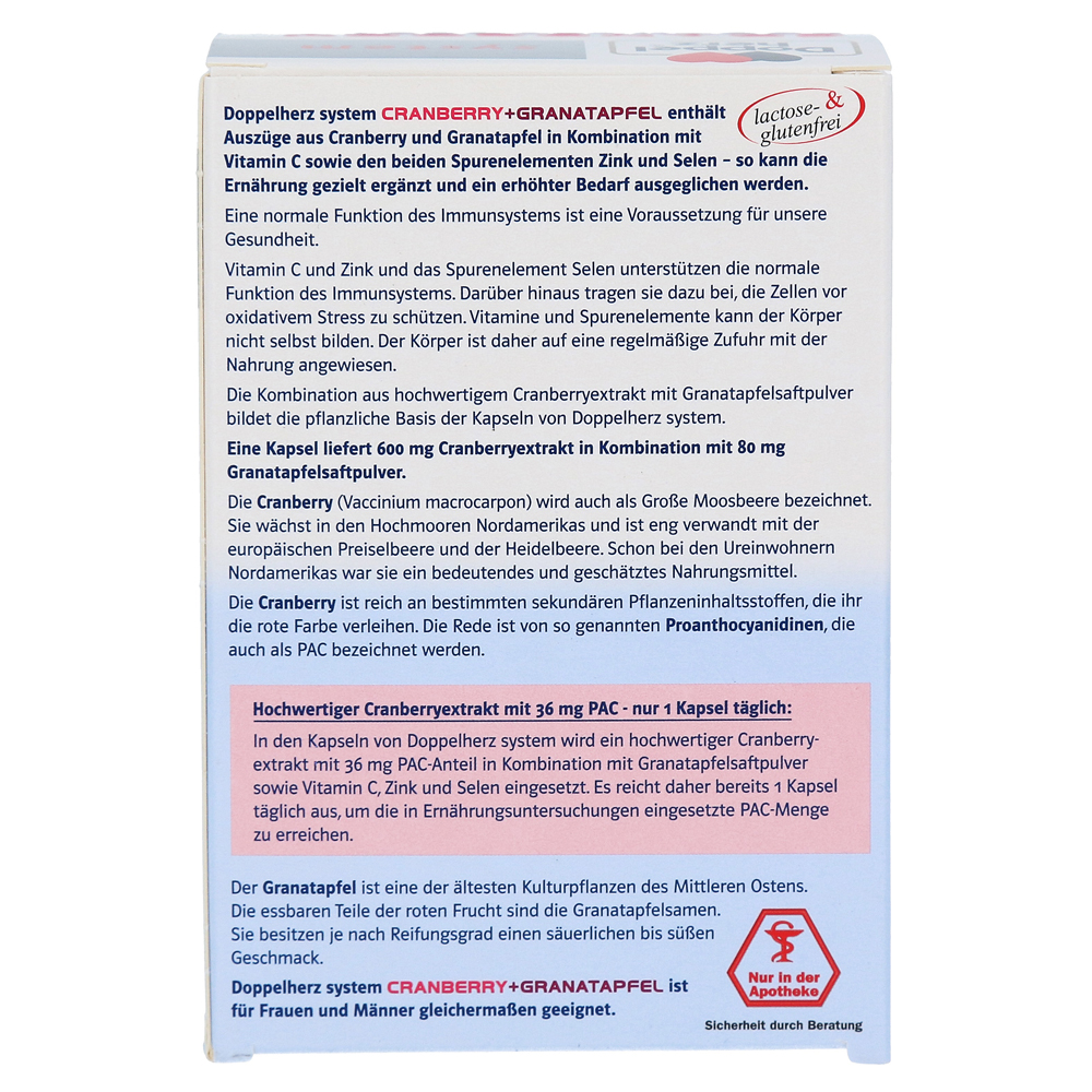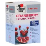 Двойная сердечная система Cranberry + гранат содержит выдержки из клюквенного и граната в сочетании с витамином С, а также двумя микроэлементами цинка и селена — поэтому диета может быть специально дополнена, а повышенные потребности компенсируются.