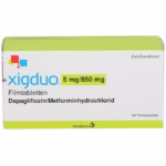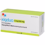 XIGDUO – комбинированный препарат для лечения сахарного диабета 2 типа. В составе: дапаглифлозин (5 мг) и метформин (850 мг). Дапаглифлозин относится к ингибиторам SGLT2, снижает уровень глюкозы в крови за счет выведения ее с мочой. Метформин – бигуанид, подавляет синтез глюкозы в печени и повышает чувствительность тканей к инсулину.