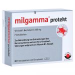 Таким образом, Milgamma Protekt подходит для лечения невропатий благодаря дефициту витамина B1. Поскольку диабетики имеют повышенный риск такого дефекта, активное вещество бенфотиамин идеально подходит для устранения этого дефицита в качестве причины невропатий.