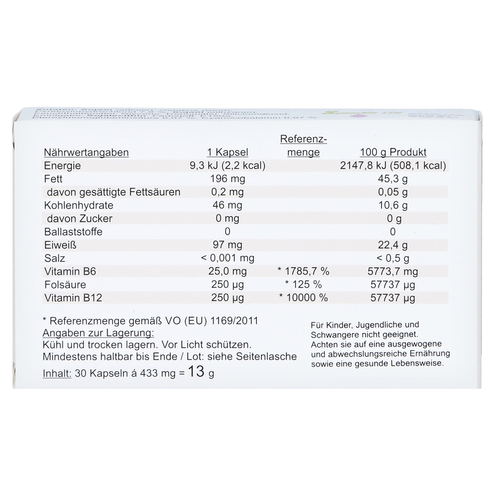 Пищевая добавка содержит одноразовое сочетание витамина B6, витамина B12 и фолиевой кислоты и используется с увеличением зеркал гомоцистеина. Фолиевая кислота имеет решающее значение для деградации гомоцистеина в крови, витамины B6 и B12 поддерживают эту деградацию.