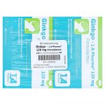 Действующие вещественные листья гинкго сухого экстракта, экстрагируют водой ацетона (35-67: 1) | 120 мг |