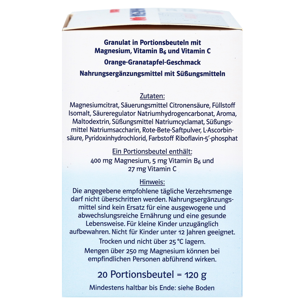 Питьевые гранулы с оранжевым гранатом вкусом для растворения воды поставляют корпус повышенным требованием магния Z. B. Из-за физического стресса (например, спорта), если есть несбалансированная диета одновременно.