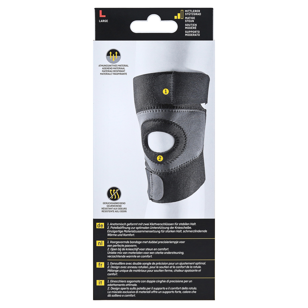 Спорт Футуро Спорт влагоотключающее коленное повязку обеспечивает твердую удержание и помогает облегчить острую и хроническую боль в колене, вызванную синдромами перегрузки и нестабильностью. Для предотвращения обновленных травм. Может использоваться в спорте и других физических нагрузках.