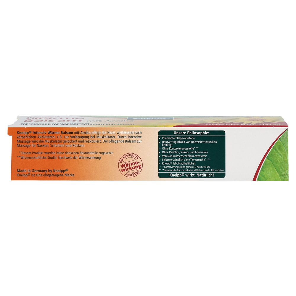 Кнайпп интенсивно тепловой бальзам обслуживает внешнее приложение в мышечной натяжении, вытягивании мышц и после физической активности для предотвращения мышечных кошек.