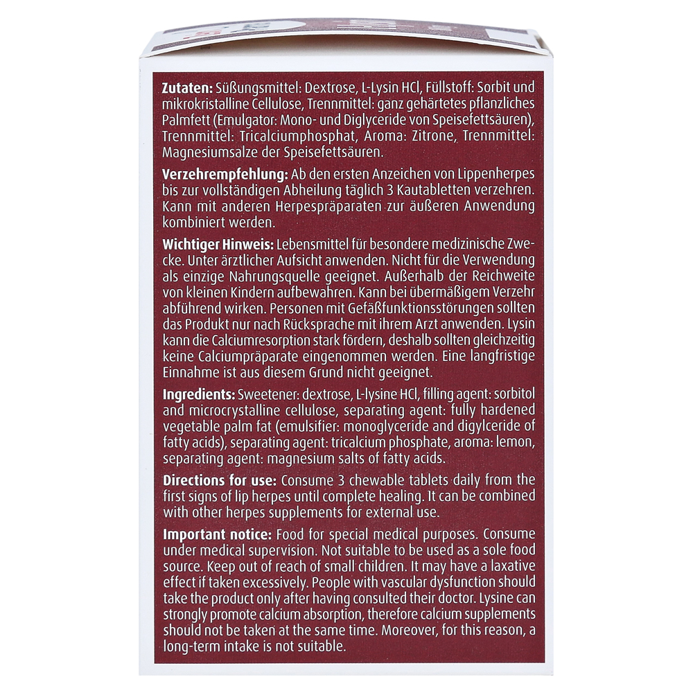 Из-за лекарственной формы в качестве жевательной таблетки с фруктовым лимонным вкусом, L-лизин может быть быстро и легко переработан организмом в высокой дозировке и оптимально.