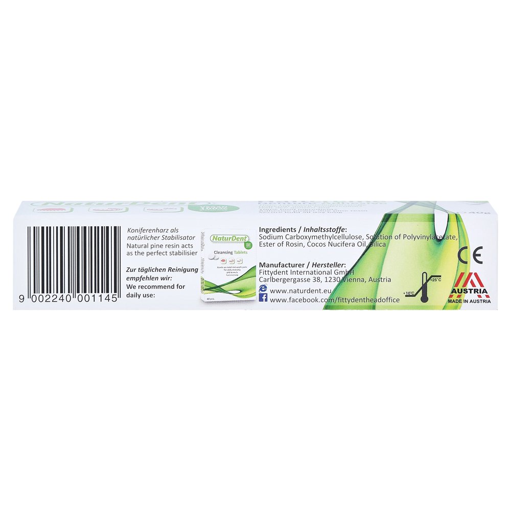 Натуральный клей с хвойной смолой изготавливается исключительно из пищевых ингредиентов и использует смолу хвойных для безопасного удержания зубных протезов. Формула естественных клейких крем-крема работает в соответствии с «принципом жевательной резинки», что означает, что она придерживается челюсти вместо того, как только обычные клейки придерживаются. Таким образом, более сильный и длительный удержание для верхней челюсти, более низкая челюсть и частичные протезы возможны. Природная хвойная смола действует как оптимальный стабилизатор для зубных протезов. С помощью натурального клейкого крема движутся и скольжения могут быть эффективно предотвращены. Таким образом, нет остатков пищи под протезом.