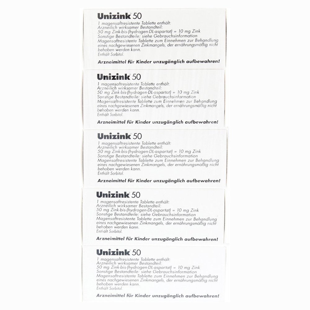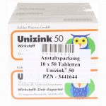 В Unizink 50 активный ингредиент представляет собой цинк к собственной белковому компоненту организма связанной аминокислотой «аспартата» (= цинковый аспартат). Это цинковое соединение может быть очень хорошо принятым в тонкой кишечнике и эффективно распределена в органы.