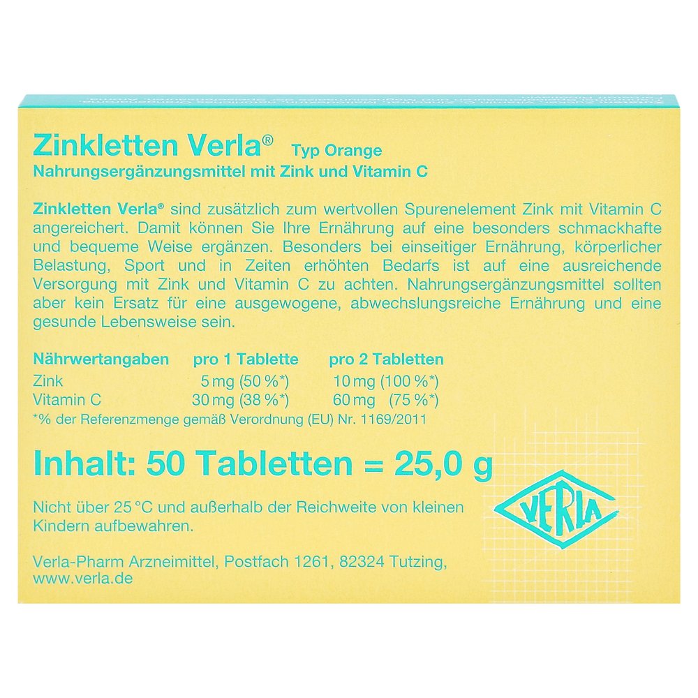 В Zinkletten Verla, помимо цинка, важный витамин C включен. Подобно цинку, витамин С необходим собственной защиты организма, для здоровой кожи и заживления ран, а также важный антиоксидант в организме.