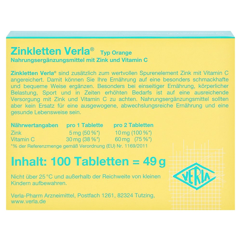 В Zinkletten Verla, помимо цинка, важный витамин C включен. Подобно цинку, витамин С необходим собственной защиты организма, для здоровой кожи и заживления ран, а также важный антиоксидант в организме.