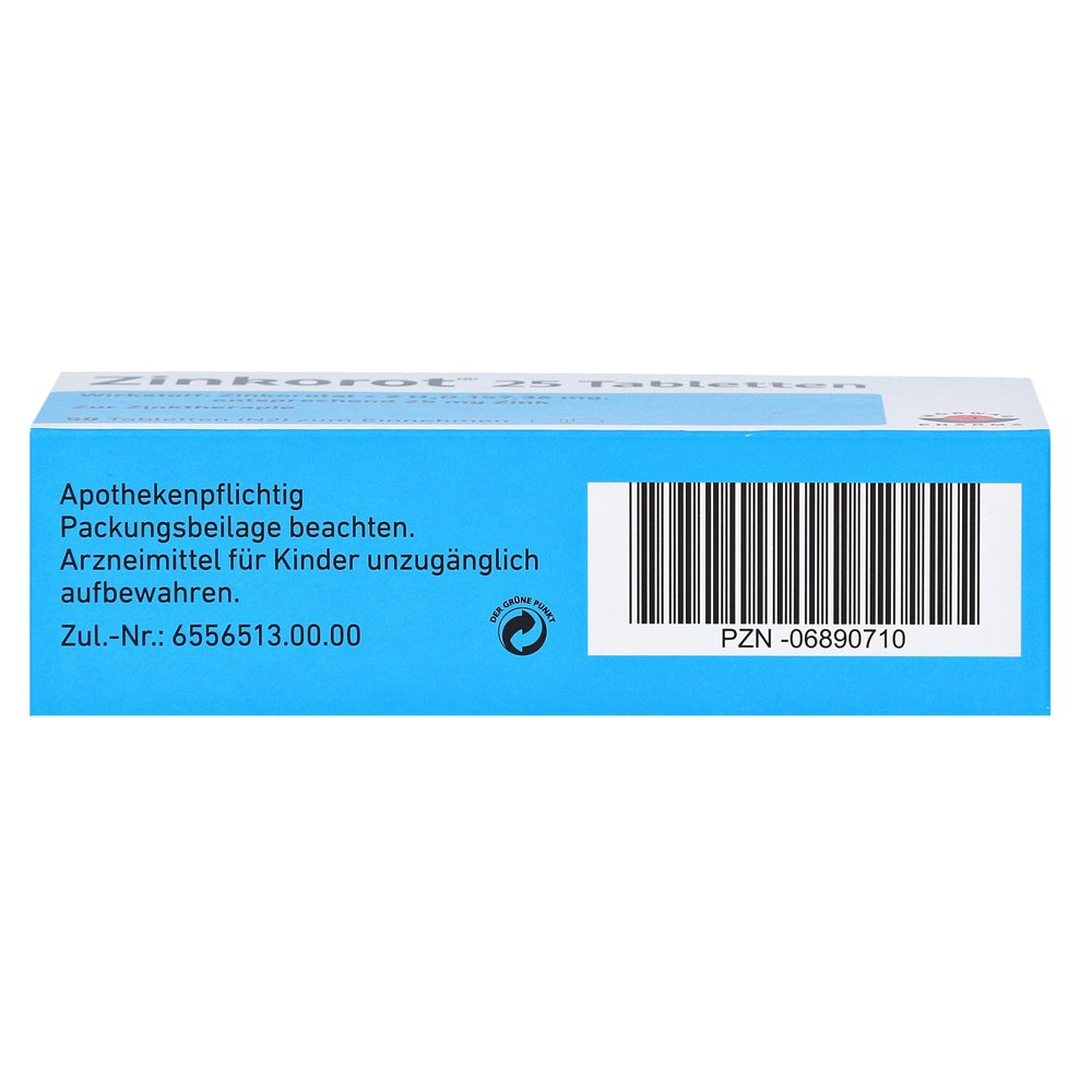 Zinkorot 25 подает организм 25 мг цинка на таблетку и, таким образом, может помочь с ежедневным потреблением, чтобы вернуть корпус цинка обратно в баланс.