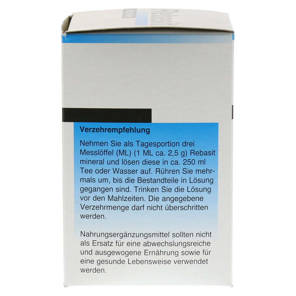 Как ежедневная часть, возьмите три измерительных ложена (около 2,5 г) ребазитарных минералов и растворяют их примерно в 250 мл чая или воды. Размешайте несколько раз, пока ингредиенты не растворяются. Пейте раствор перед едой.