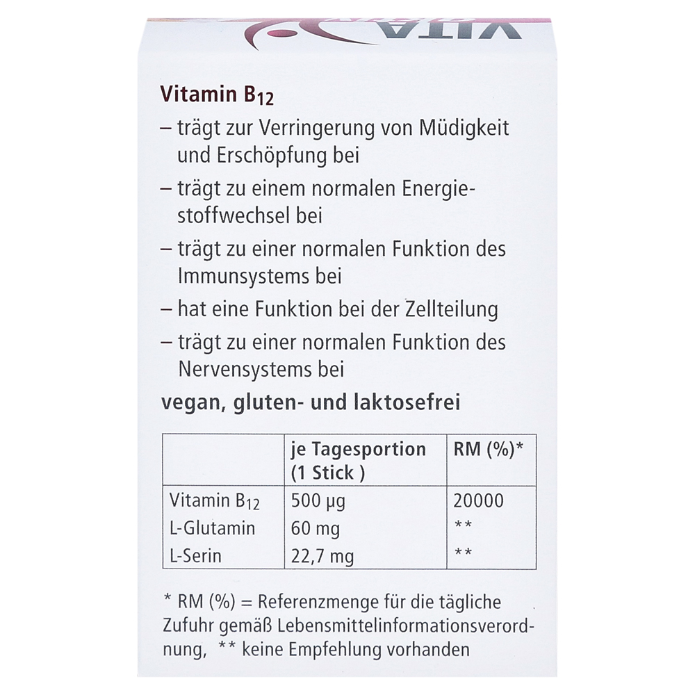 Vita Active B 12 Прямые палочки имеют усталость и усталость с включенным витамином B12 и обеспечивают нормальный энергетический обмен веществ.