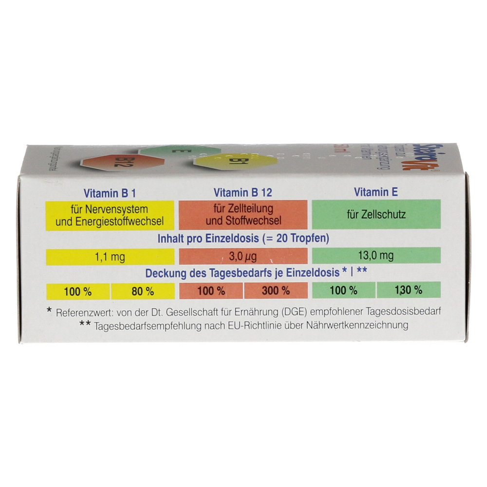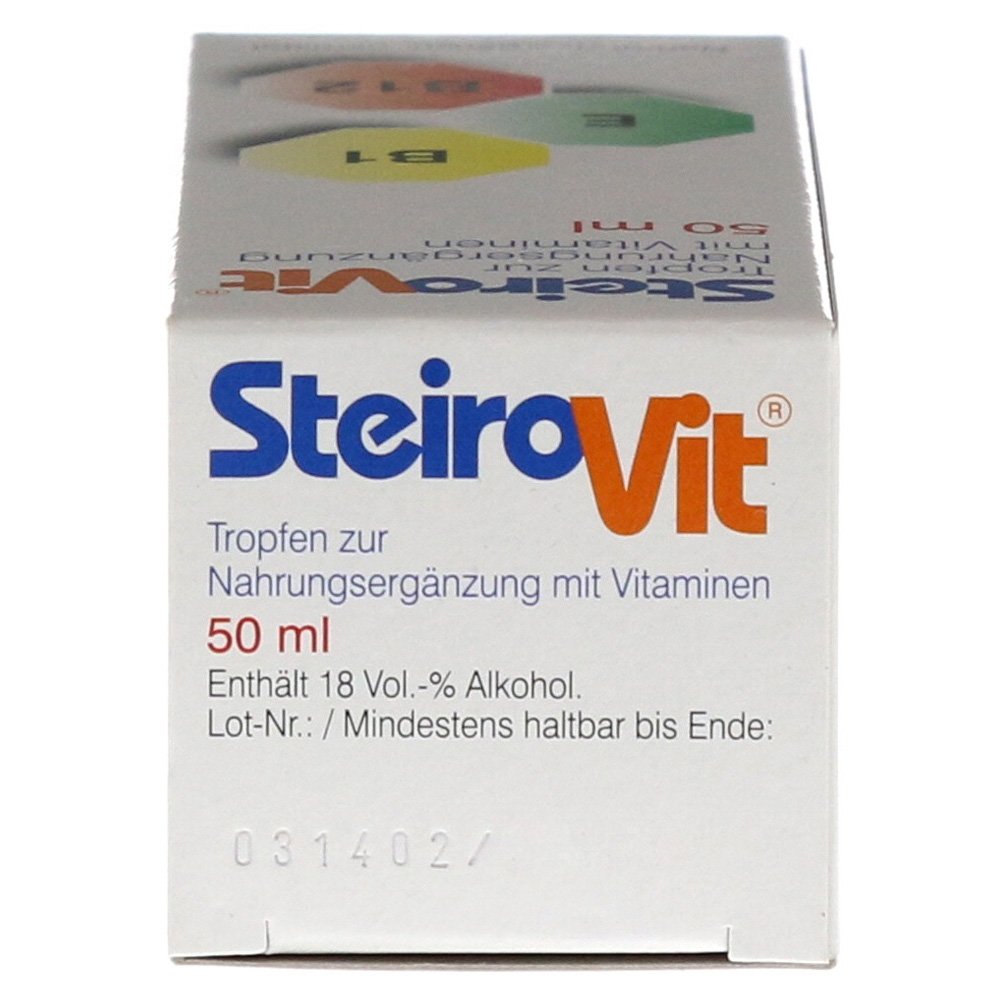 Уже 20 капель STEIROVIT покрывают достоинство рекомендуемое суточное требование для витамина B1, B12 и E.