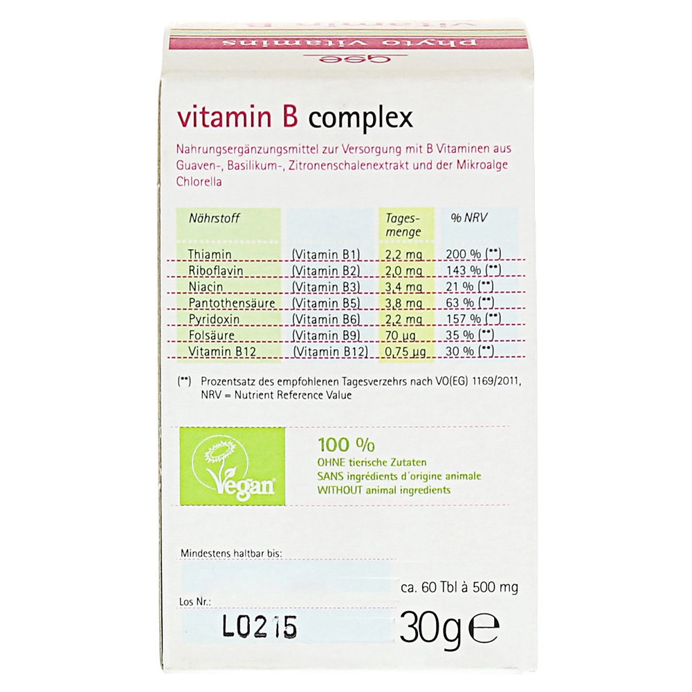Питательные добавки витамин B комплекс подают организм B витаминов биологического происхождения. Витамины B1, B2, B3, B5, B6 и B9 получают из экстрактов гуавы, листьев базилика и лимона. Витамин B12 поступает из микроальской хлореллы.