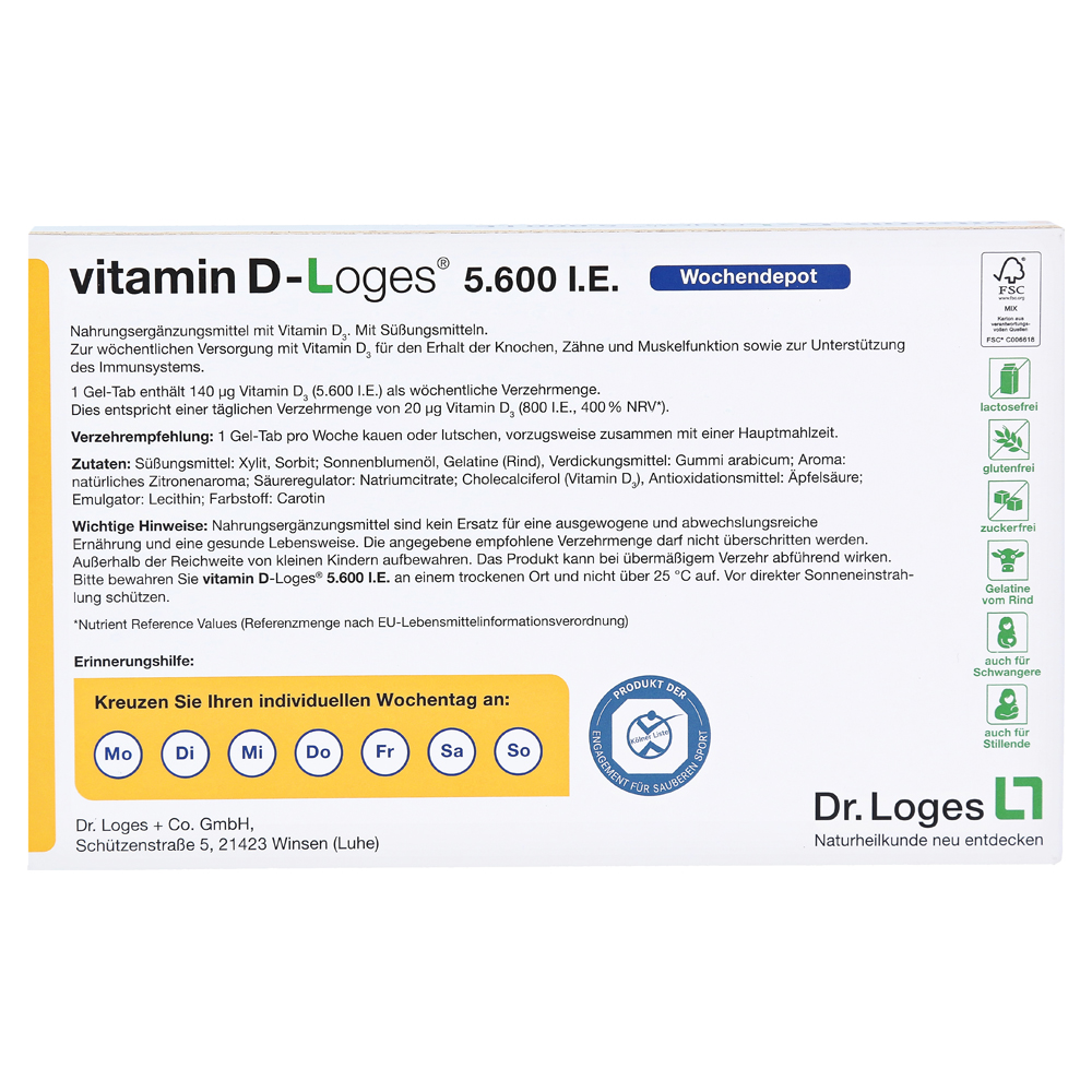С витамином D -Loges 5600 I.e. Вы можете обеспечить ежедневное поставку витамина D в неделю, не думая об этом каждый день. Кроме того, сохранение костей, зубов и функций мышц, а также иммунная система может поддерживаться.