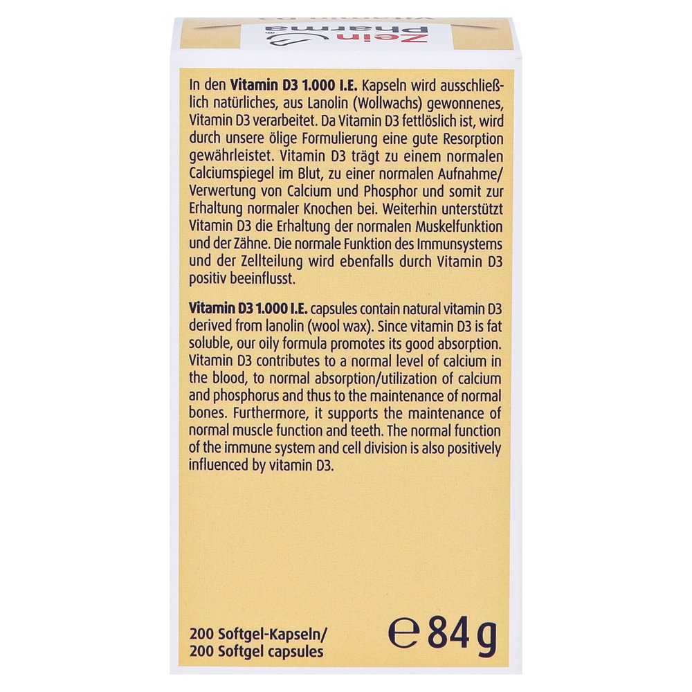 VITAMIN D3 1.000 I.E. Softgel-Kapseln ZeinPharma (200 штук)