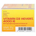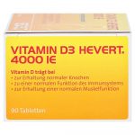 Витамин D3 Hevert 4000 т.е. корпус с витамином Д. Витамин D, важен для многих функций, способствует сохранению нормальных костей и зубов и нормальной функции мышц. Кроме того, он имеет функцию в разделении клеток, способствует нормальной функции иммунной системы, нормальной записи и переработки кальция и фосфора и, следовательно, нормальный уровень кальция в крови.