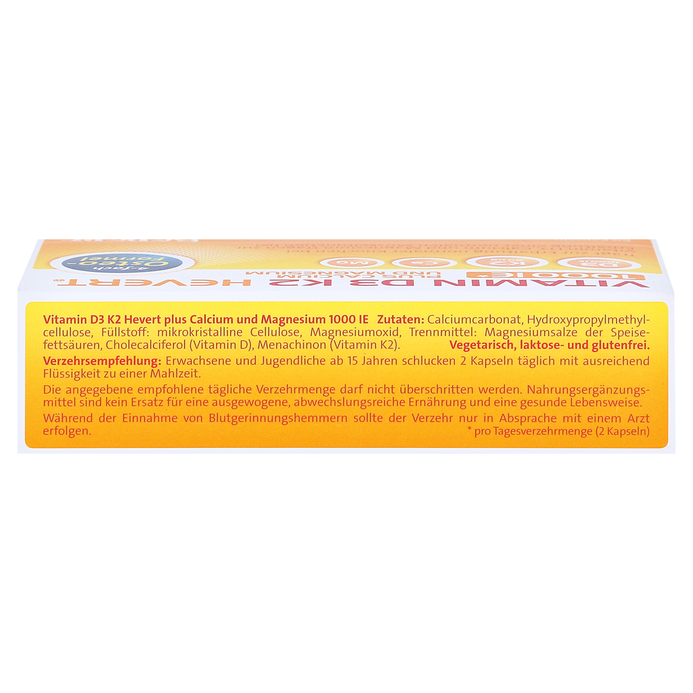 Главная страница » Товары » VITAMIN D3 K2 Hevert plus Ca Mg 1.000 I.E./2 Kaps.