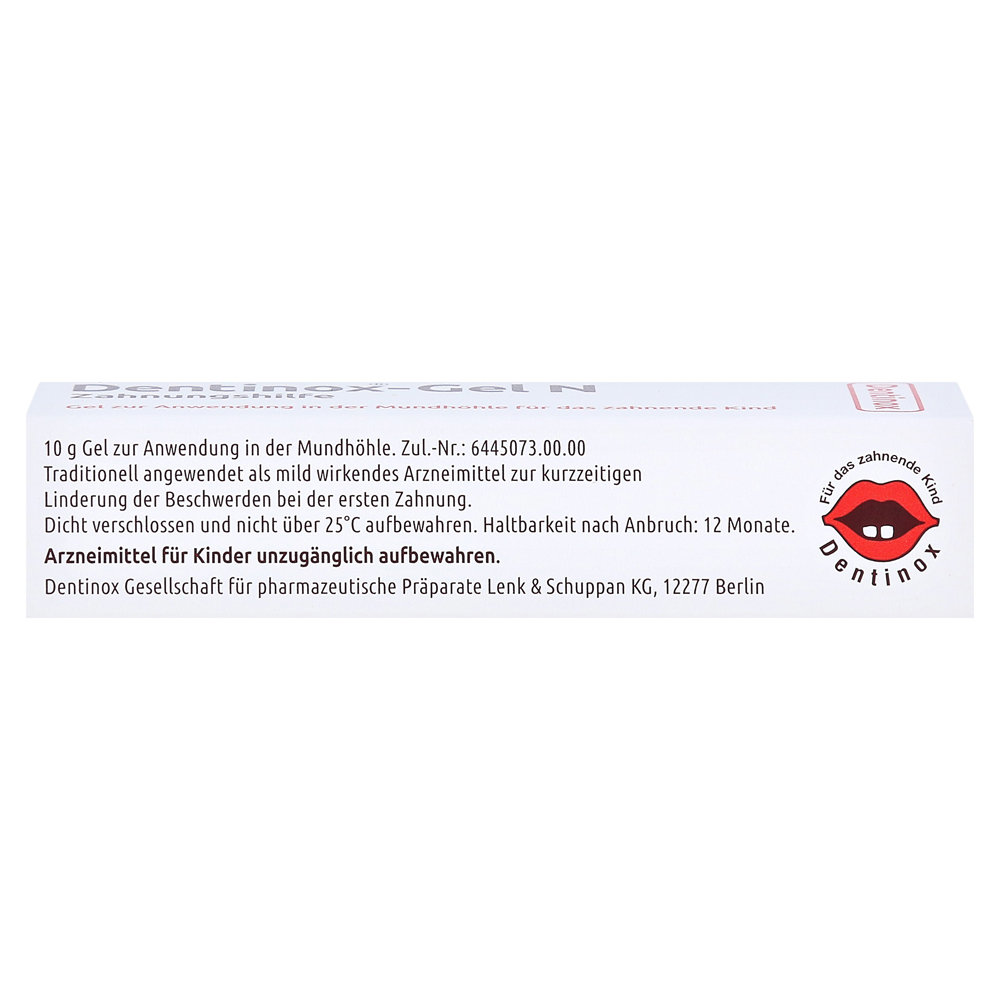 Dentinox N зубчатые аппараты используются в качестве слегка действующих лекарств для краткосрочного облегчения жалоб на первое зубчатое. Они помогают содействовать прохождению первых зубов и всей диеты, включая более поздние моляры.