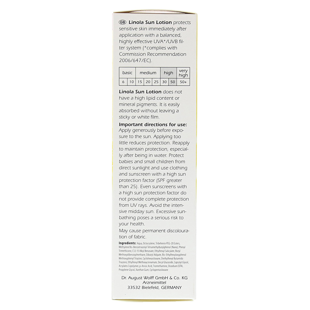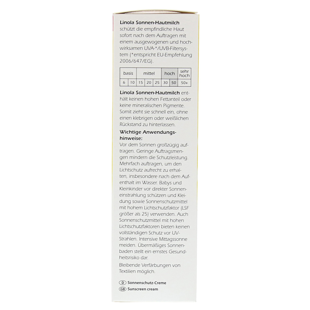Солнцезащитное молоко Linola также защищает чувствительную кожу и нейродермит против УФ-лучей. Система высокой фильтрации с LSF 50 легко распределяется из-за проверенной эмульсии нефти в воде.