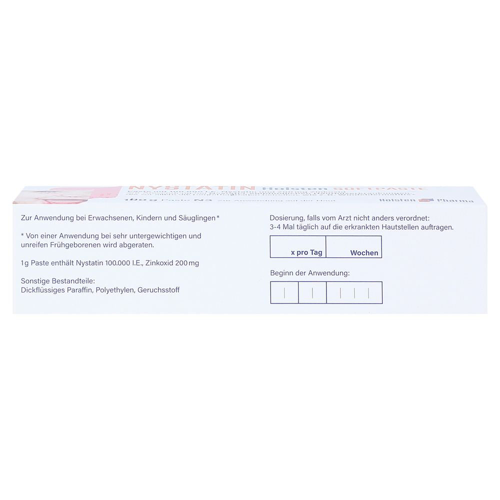 Nystatin Holsten SoftPaste — это целебная паста с нистатином и оксидом цинка для использования в заболеваниях кожи пилон.