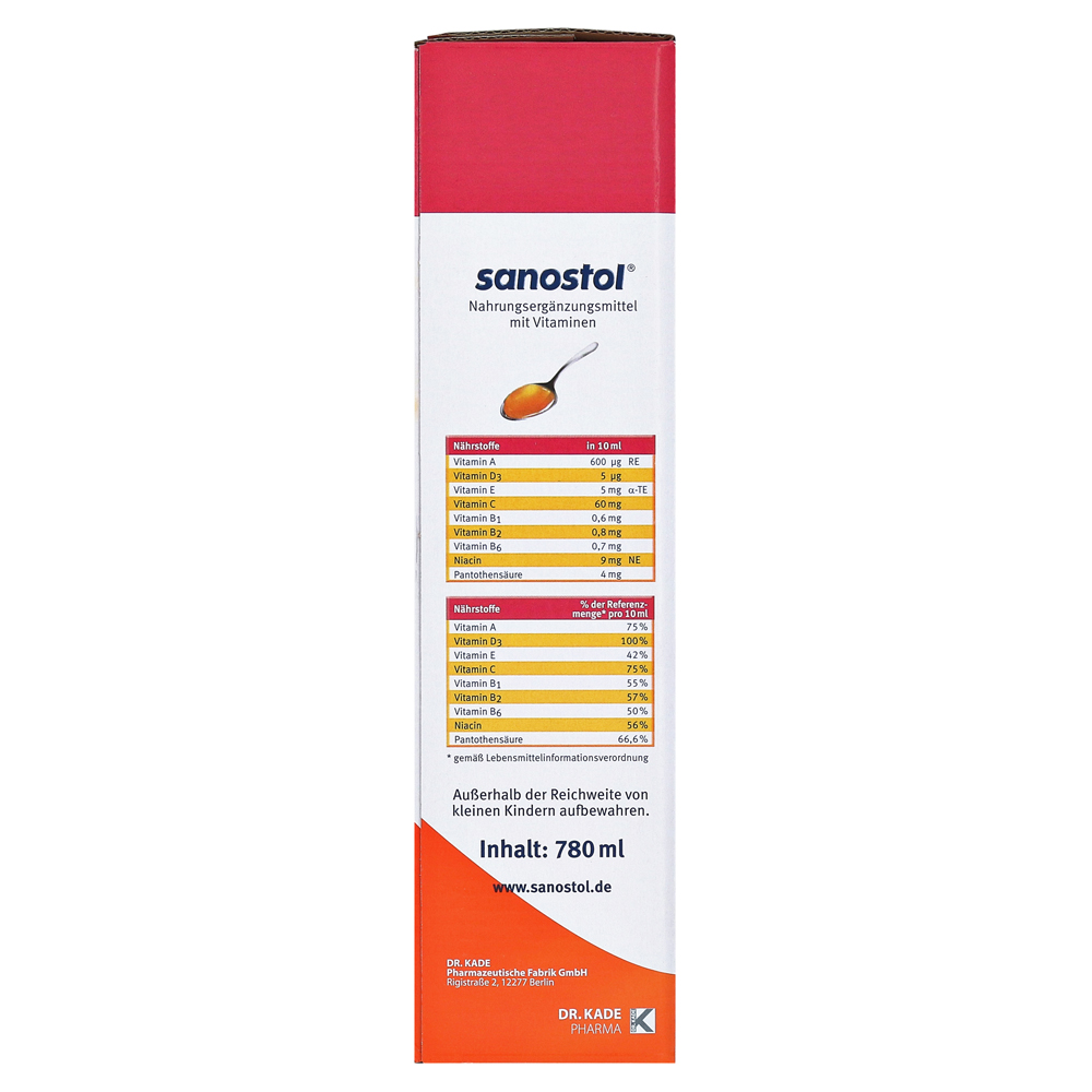 Sanostol Multi-Vitamin — это пищевая добавка с витаминами для детей от 3 лет и взрослых. Он содержит тебя. A. Витамины C, A, D и B6 для поддержки нормальной функции защиты.