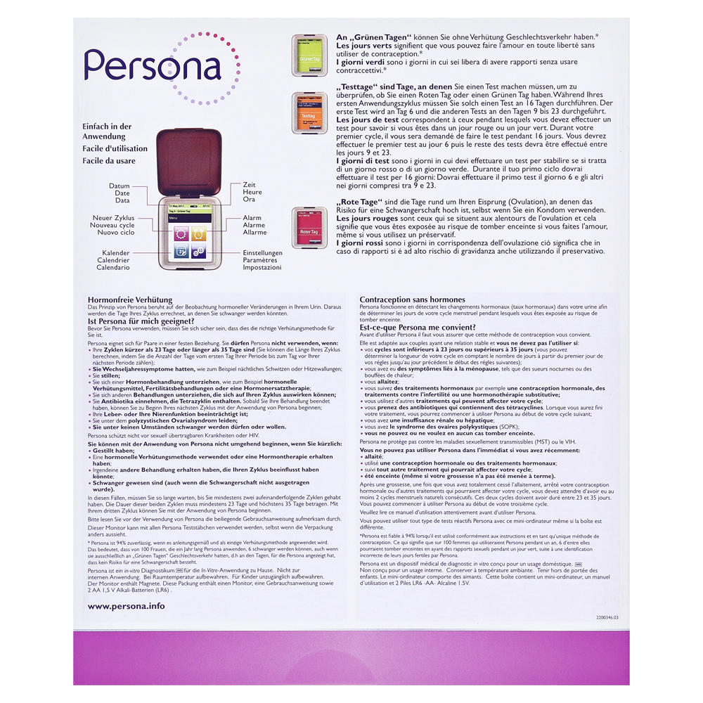 * Персона 94% надежна, если она применяется к менеджерам и как единственный метод контрацепции. Это означает, что 100 женщин, которые применяют персону в течение года, 6 могут забеременеть, даже если у них был сексуальный общение исключительно на «зеленых днях», d. ЧАС. В дни, для которых показана персона, что нет риска для беременности.
