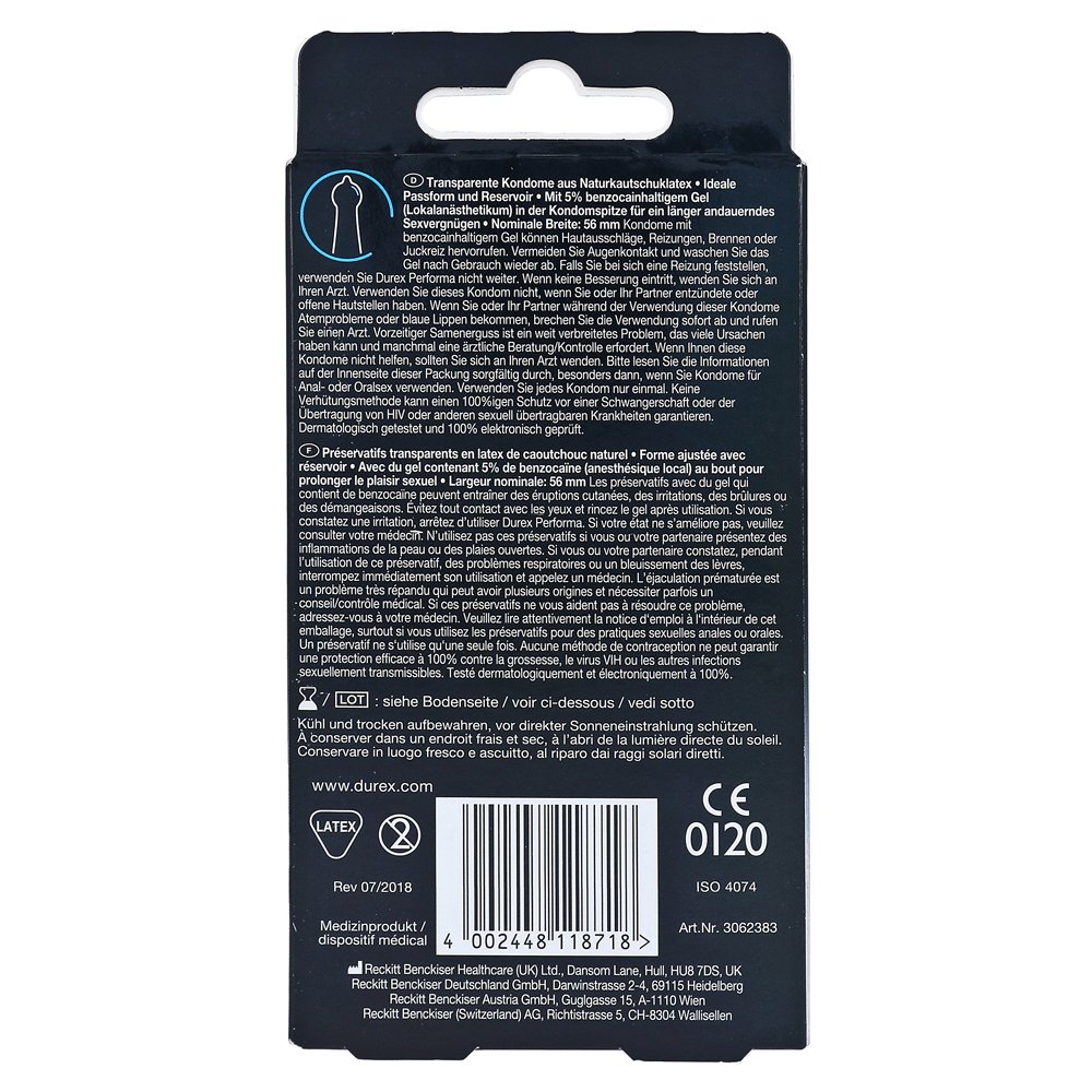 Прозрачный презерватив с номинальной шириной 56 мм обеспечивает безопасную и надежную защиту и может легко применяться благодаря идеальной подгонке. Он содержит гель с 5% бензокаином в наконечнике презервативов и, таким образом, может обеспечить более длительное удовольствие.
