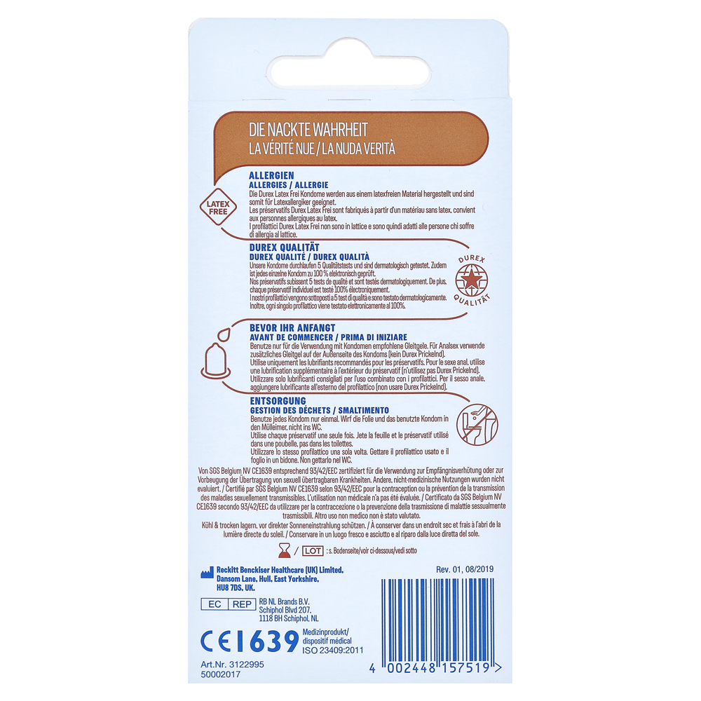 БЕСПЛАТНЫЕ презервативы без латекса Durex дышаются и, таким образом, обеспечивают интенсивные моменты на двоих. Они обеспечивают безопасную и надежную защиту и могут легко создавать благодаря гладкой анатомической форме.