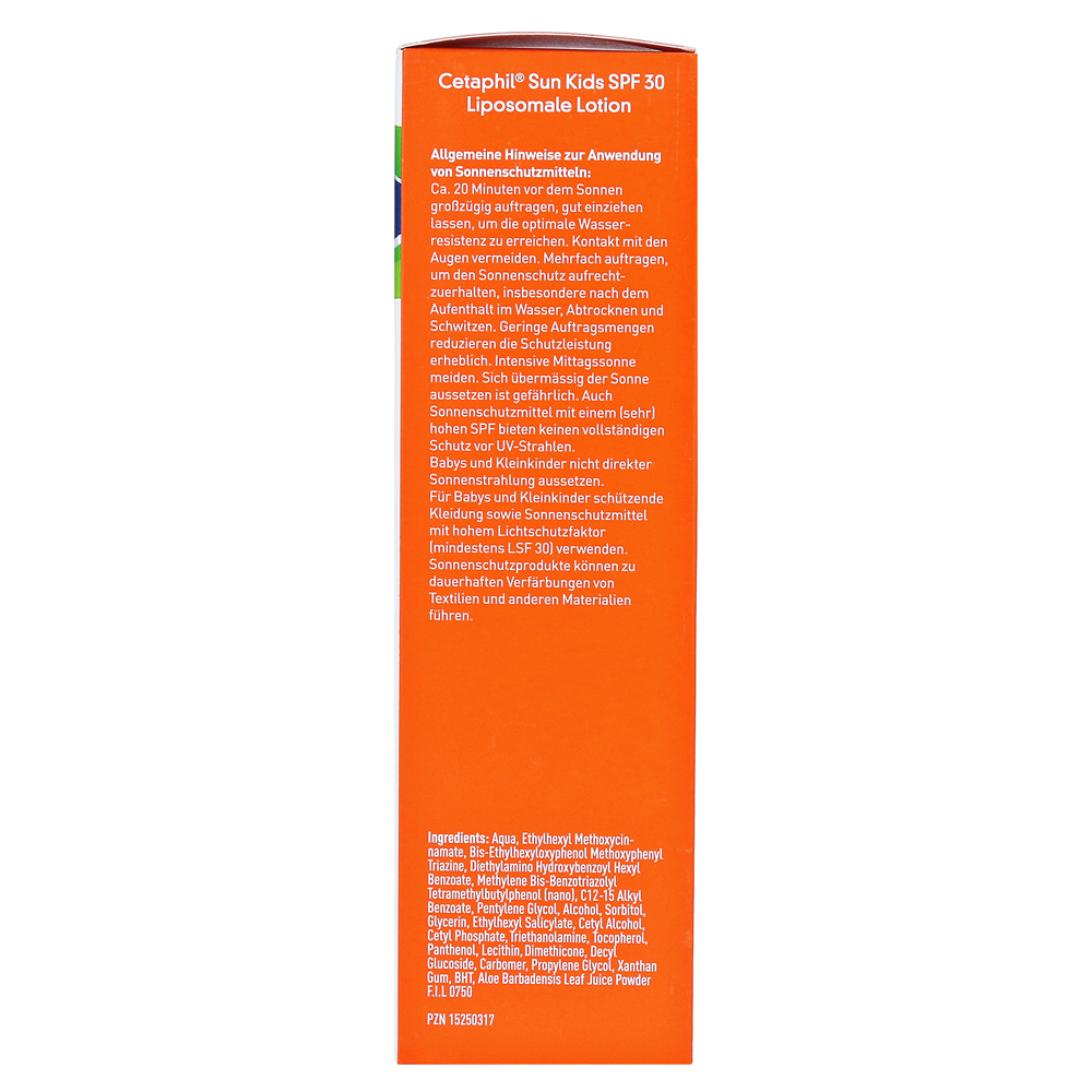 Cetaphil Sun Kids Liposomal Lotion SPF 30 был специально разработан для чувствительной детской и детской кожи и поддерживает кожу с декспантенолом и глицерином, а также алоэ вера и витамин Е.
