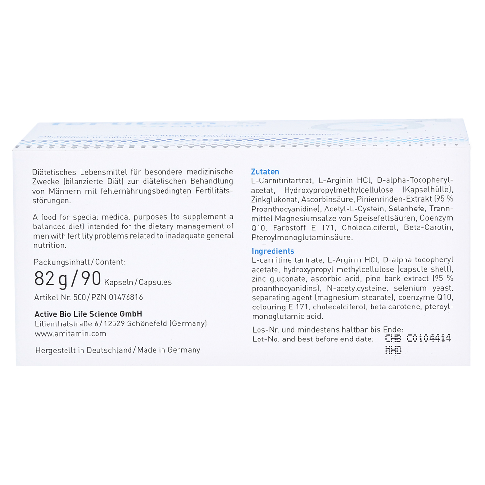 Пищевая пища для специальных медицинских целей для управления диетами мужских с недорогими расстройствами фертильности и ограниченная спермиограмма.