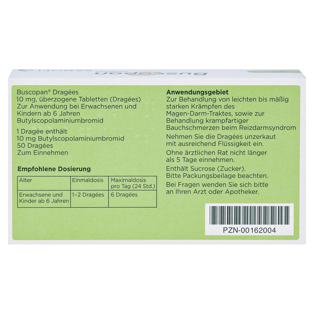 Buscopan Dragées в свете, чтобы умеренно сильные судороги в области живота, вызванные Z. B. Стресс, непереносимость пищевых продуктов, раздражительный кишечник или метеоризм, влияние эффектов.