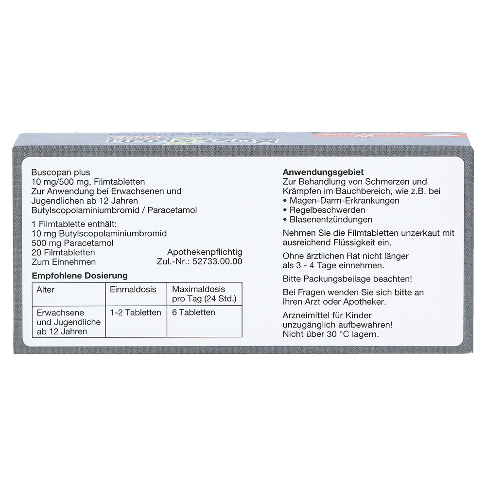 Таблетки с пленочным покрытием Buscopan Plus эффективны, а также обезболивают и облегчает большую боль в животе и судороги.